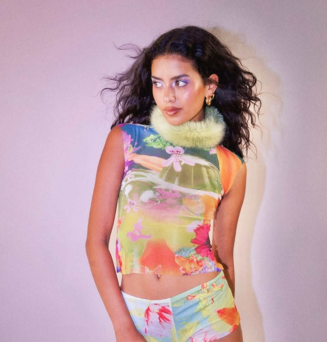 A brand new design, made from our popular Florence power net fabric, soft and breathable. This tank top features an original SLXWORLD print, and gorgeous faux fur neck trim detailing.